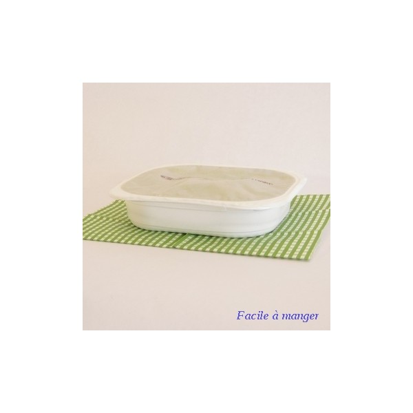 Pratique, la barquette de ce plat mixé est micro ondable. Avis de dégustation très favorable.